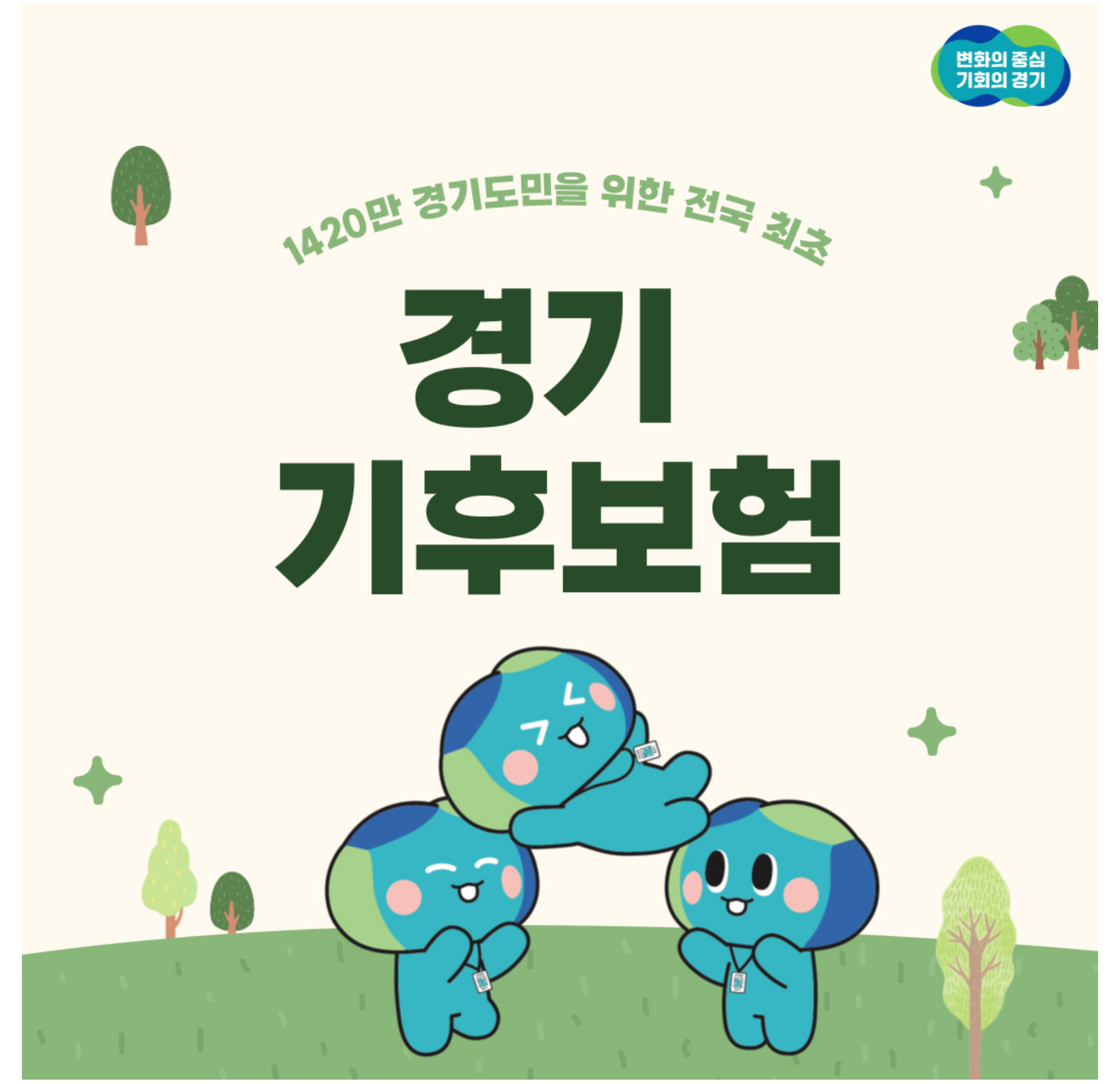 4월 8일 경기기후보험홍보 콘텐츠 공모전의 수상자 발표가 있었습니다. 경기 기후보험이란 경기도가 전국 최초로 시행하는 정책 보험으로, 기후 변화로 인해 발생하는 도민의 건강 피해를 보장합니다. 별도의 가입 절차 없이 경기도에 주민등록을 둔 모든 도민(등록 외국인, 외국 국적 동포 포함)에게 자동으로 가입됩니다. 보험료는 경기도에서 전액 부담합니다.