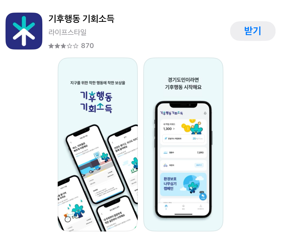 구글 플레이스토어에서 기후행동 기회소득으로 검색하시면 휴대전화에 설치 할 수 있습니다.